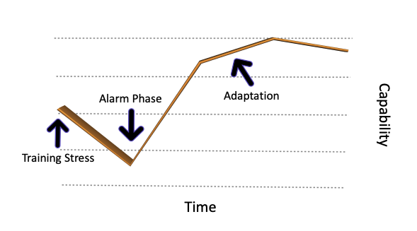 Let’s say that a training session is the application of training stress. The purpose of training stress, or training stimulus is to prompt an adaptation.